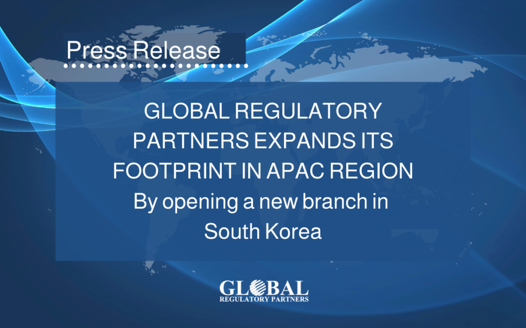 GLOBAL REGULATORY PARTNERS EXPANDS ITS FOOTPRINT IN APAC REGION BY OPENING NEW BRANCH OFFICE IN SOUTH KOREA